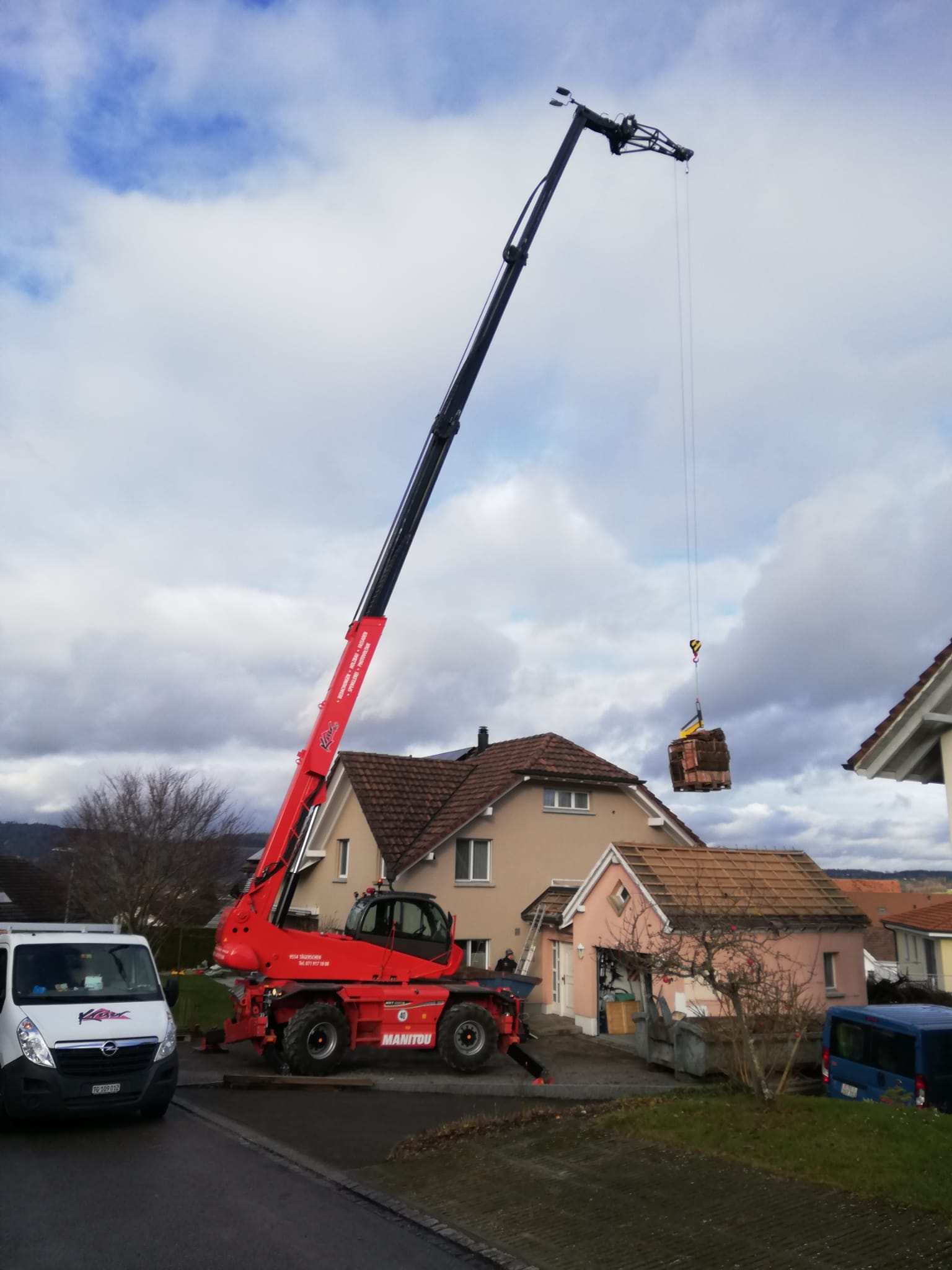 Ist die Zugänglichkeit schwierig oder hoch, verwenden wir für die Arbeiten unseren Teleskopstapler mit Arbeitsbühne.